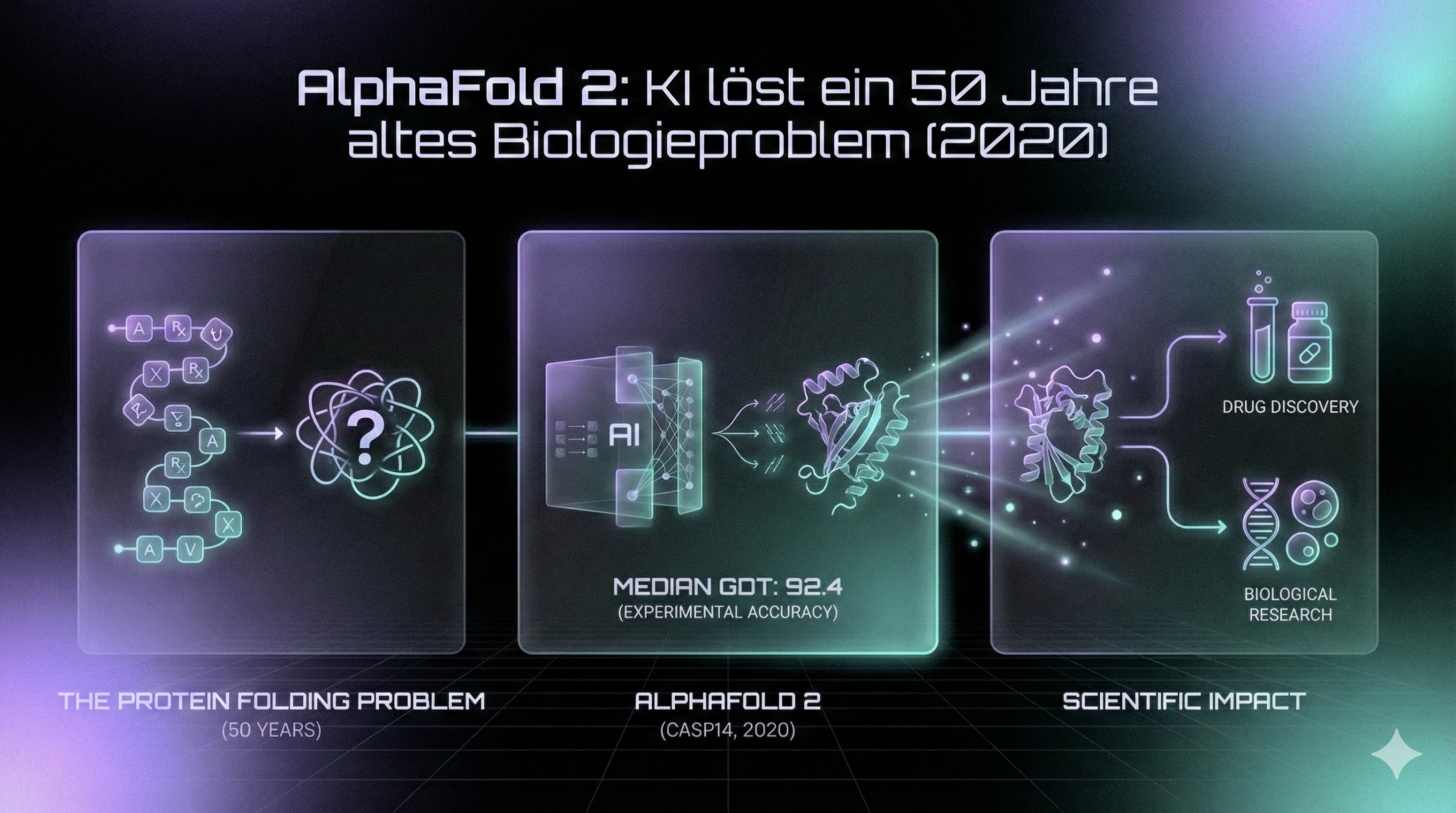 Das war der erste überzeugende Beweis, dass KI fundamentale wissenschaftliche Entdeckungen jenseits von Spielen oder Mustererkennung beschleunigen kann. Die Auswirkungen für Medikamentenentwicklung und biologische Forschung sind bis heute enorm.