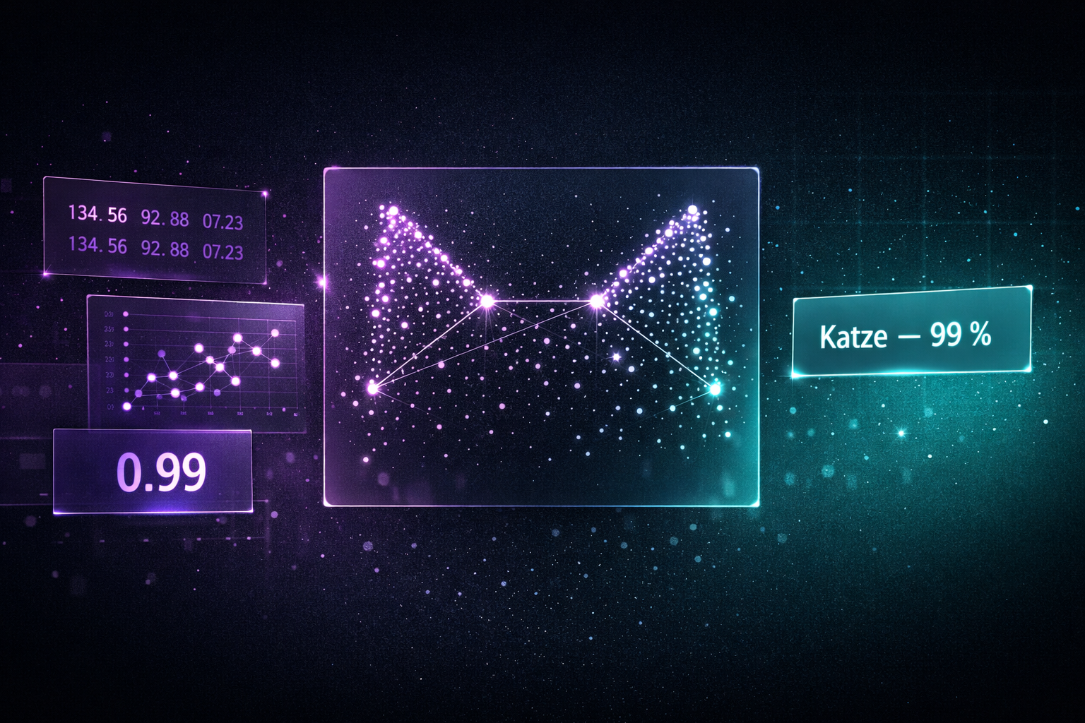 Wenn wir sagen, eine KI „lernt“ Katzen zu erkennen, meinen wir: Sie findet in diesen Zahlen statistische Auffälligkeiten. Sie stellt fest, dass eine bestimmte Anordnung von Werten (die wir als „spitze Ohren“ sehen würden) oft in Dateien mit dem Etikett „Katze“ vorkommt. Die KI versteht nicht, dass Ohren zum Hören da sind. Sie weiß nur: Wenn Muster X auftaucht, ist die Wahrscheinlichkeit für „Katze“ bei 99 %.