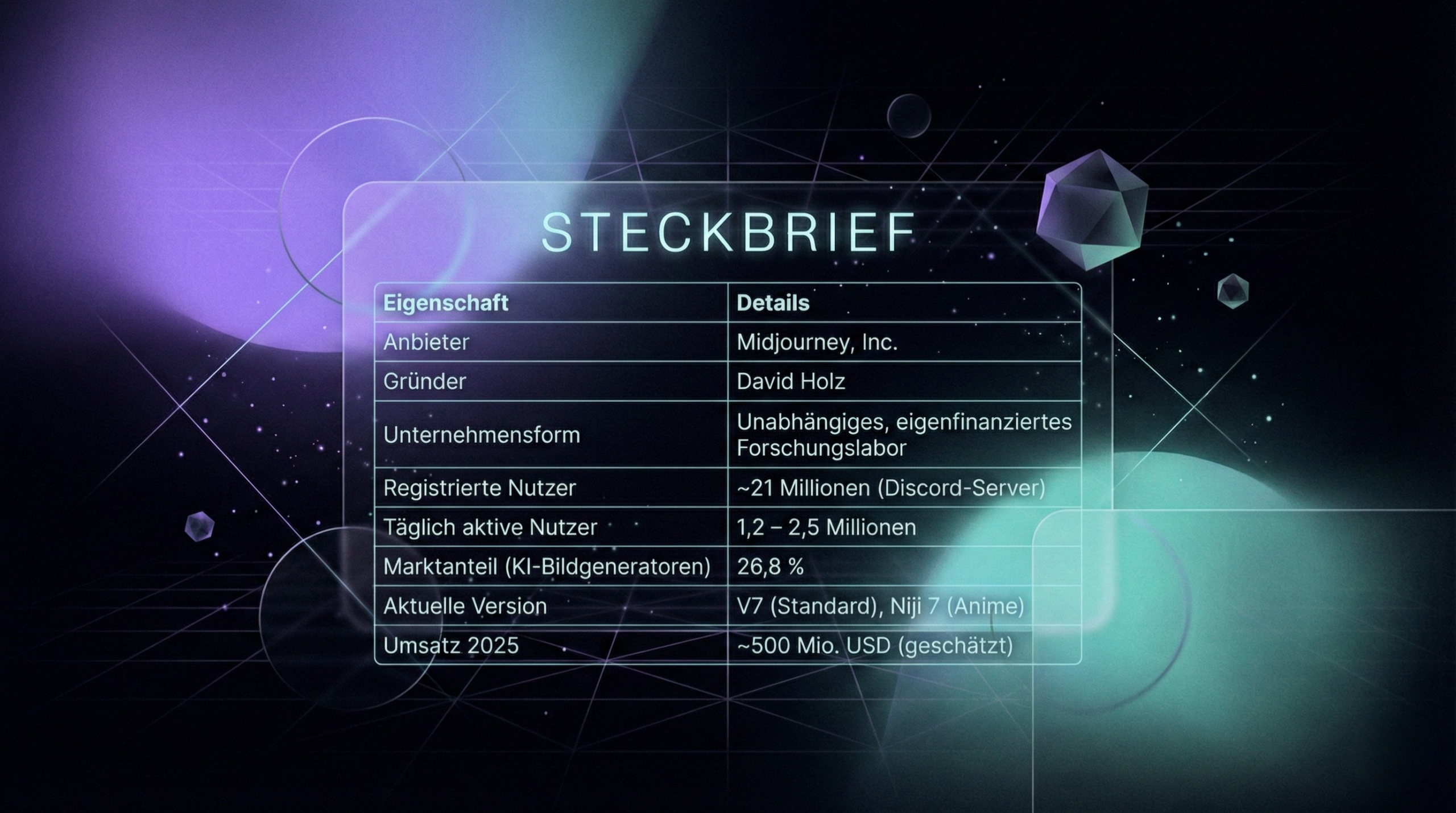 Gegründet wurde Midjourney von David Holz, der zuvor Leap Motion mitaufgebaut hat. Die Philosophie dahinter: Nicht Automatisierung steht im Vordergrund, sondern die Erweiterung menschlicher Kreativität und Vorstellungskraft.