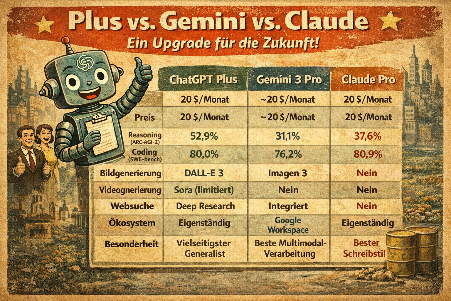 Vergleichstabelle: Plus vs. Gemini vs. Claude