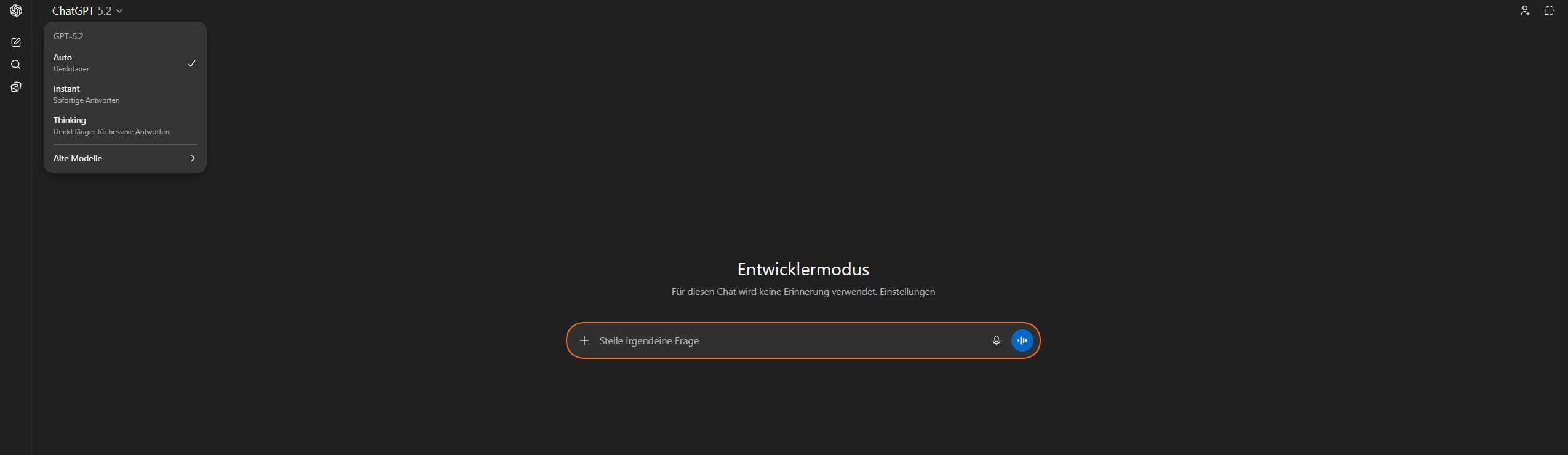 GPT-5.2 Instant ist dein Standard-Modell im Plus-Abo. Es wurde für minimale Latenz optimiert – du bekommst Antworten praktisch ohne Wartezeit.