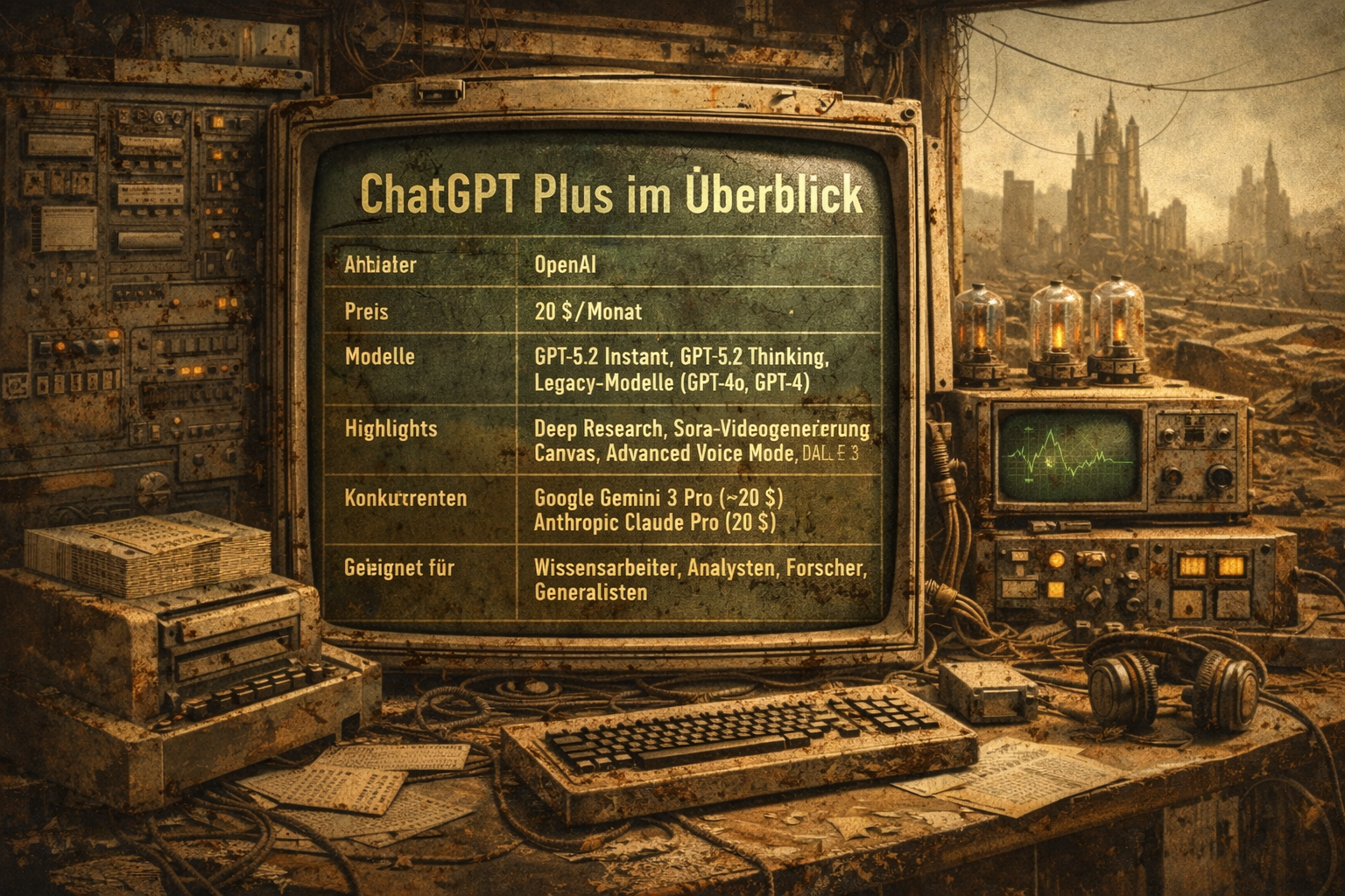 | Konkurrenten | Google Gemini 3 Pro (~20 $), Anthropic Claude Pro (20 $) |