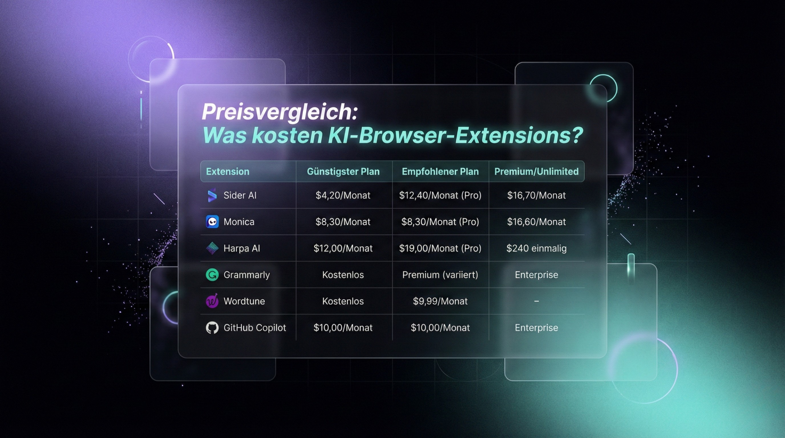 Die Kosten für KI-Extensions haben sich 2026 eingependelt. Hier der direkte Vergleich der relevanten Tarife: