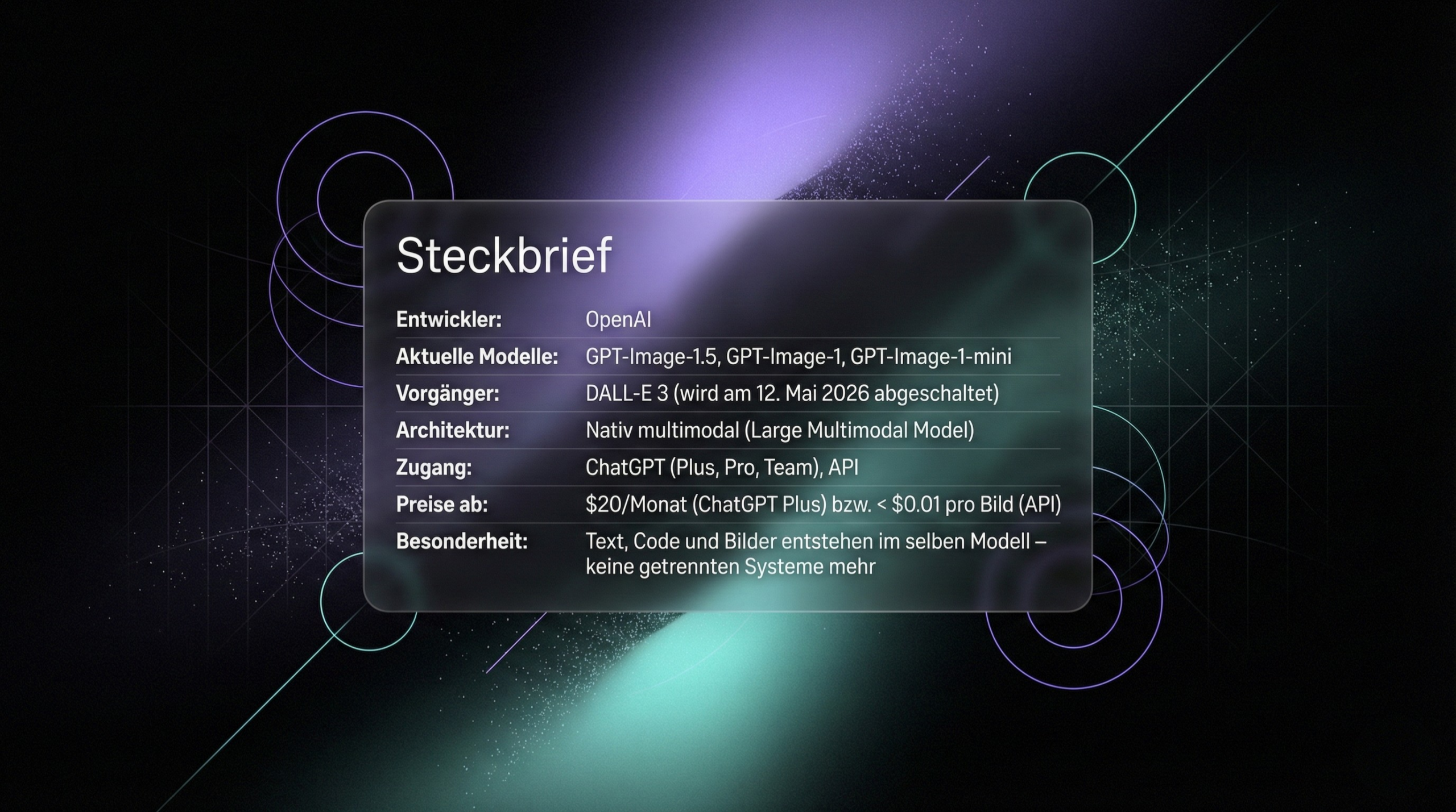 Januar 2026Legacy-StatusDALL-E 3 ist technisch veraltet, funktioniert aber noch