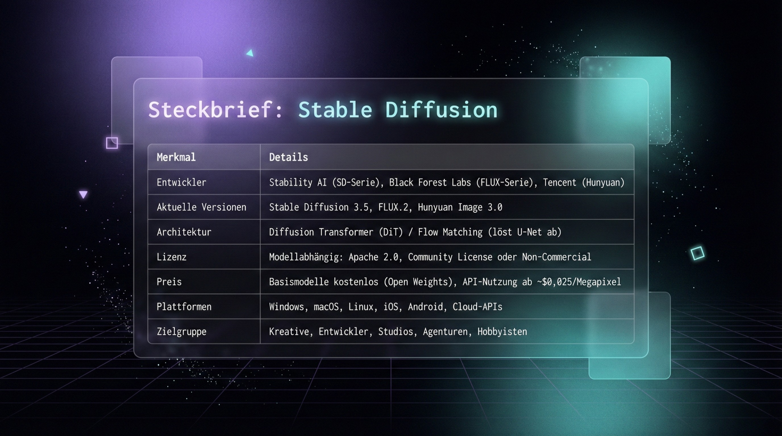 | Aktuelle Versionen | Stable Diffusion 3.5, FLUX.2, Hunyuan Image 3.0 |